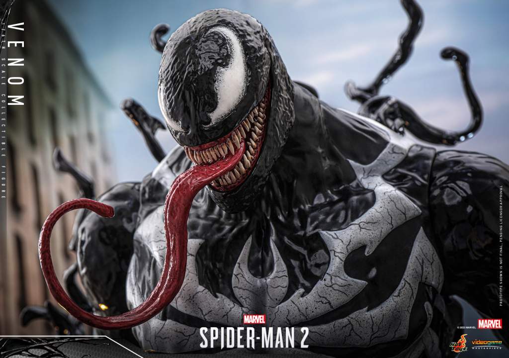 To celebrate the official debut of Marvel’s Spider-Man 2, Hot Toys is bringing the monstrous Venom from Marvel’s New York to life as the latest sixth scale collectible figure! Measures 53cm tall, the one-sixth-scaled Venom collectible figure is faithfully crafted based on his intimidating appearance in the videogame. Features a newly developed head sculpt with mouth-opened and another head sculpt with a wicked grin accompanied by swirled eyes, fanged teeth, and detailed musculature. To further enhance his gruesome expressions, three styles of tongues are included, adding depth to his menacing countenance. Completing his overpowering look are the white spider-symbols adorning his chest and back, newly designed symbiote tendrils, and menacing attacking claws.