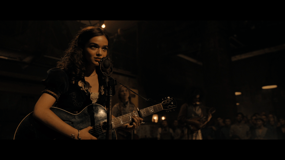 The transfer is a 2160p HEVC H.265 presentation. It has a look similar to the previous HUNGER GAMES films with the drab tone purposefully driving the dystopian feel. This highly detailed transfer adds depth to the images. The tech especially has corrosion and grime. The skin textures stand out in the many sharp close-ups in the movie. Clothing details show off the various materials and quality depending on the characters such as the homemade clothing on Lucy Gray vs the elite young people. The Dolby Vision accentuates colors as a nice contrast to the drab beige. Reds are the standout out of most colors and there are a few scenes with brilliant, green foliage. The skin tones are warm and natural.
