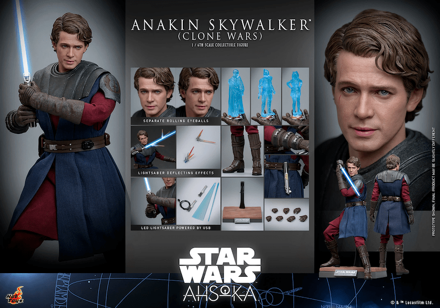 Hot Toys has announced the release of Anakin Skywalker from the Disney+ Series AHSOKA. He is based on the design from THE CLONE WARS animated series. He is available for pre-order from Sideshow Collectibles.