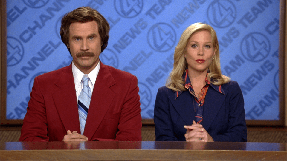 There was a time before cable when the local anchorman reigned supreme… Enter the hard-hitting world of 1970’s local TV news, where Ron Burgundy (Will Ferrell) and his loyal Channel 4 News Team are San Diego’s #1 rated news source. All is well in their male-dominated world of news until beautiful, rising star reporter Veronica Corningstone (Christina Applegate) turns it all upside down. Sparks don’t just fly, they ignite and all-out war between the two perfectly coiffed anchorpersons. In a job where it pays to keep a straight face, Anchorman is the comedy that makes it almost impossible to stop laughing. – synopsis via Paramount Pictures.
