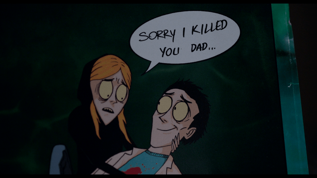 There are a few minor elements that I enjoyed and they are things that stand out to me. The first thing to mention is the comic book art. It reminds me of Jhonen Vasquez’s artwork but I can’t find any information on it. It is included in the release cover and it looks creepily perfect for the movie.