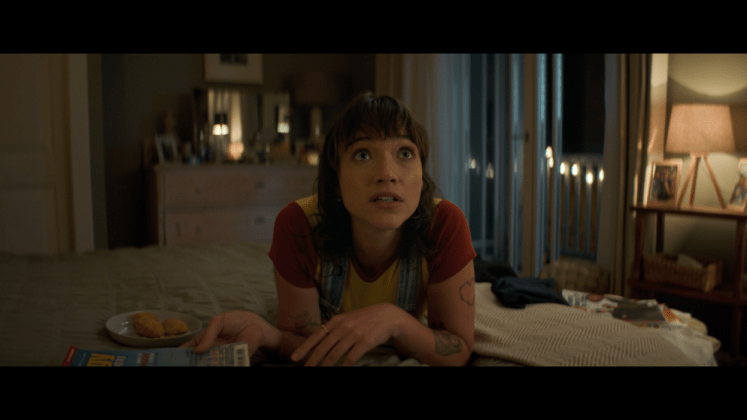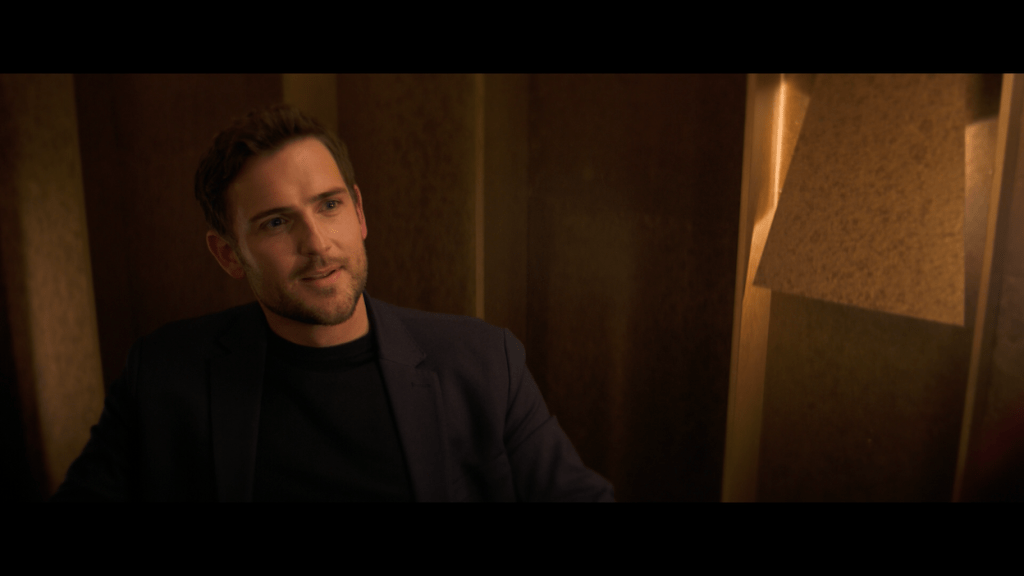 The video is a 2160p HEVC presentation with Dolby Vision. It begins with images of a flashback that are dark to quickly change to the daytime in Violet’s home with a naturally lit scene to set up the movie. In the restaurant where 85 percent of the movie takes place, the colors are rich and warm. Shimmering gold in the dark atmosphere adds small points of light and this makes it so that there is beautiful shadowing without the contrast fighting the transfer. There were no real signs of the video being murky or muddled. The clarity is remarkable and allows for sharp details. The Dolby Vision does make colors bold like Violet’s dress. The blacks are inky and show no issues that I could see. The skin tones look natural unless the character is too close to a light in the restaurant.