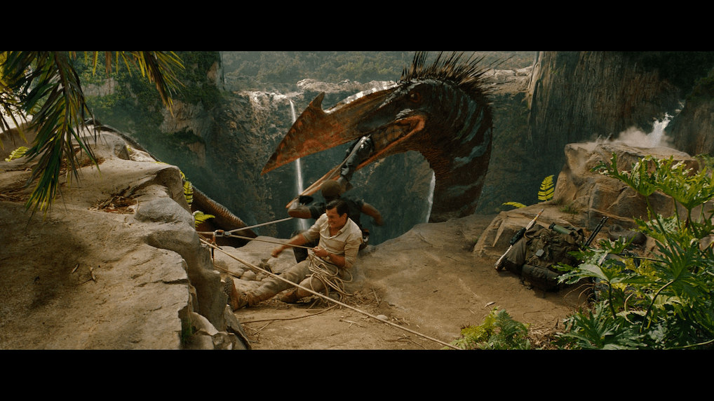 Visually, the overall tone of the movie is on the darker side. Where some scenes seem like they would have a much brighter screen but even in sunlight, this brightness is toned down. The Dolby Vision does make the colors bolder, but it looks more like a darker HDR. This level is where Edwards likes his films to be. Details are strong in everything, like dinosaur skin with small hairs over their bodies. The textures are also sharp. The skin tones are natural and warm.